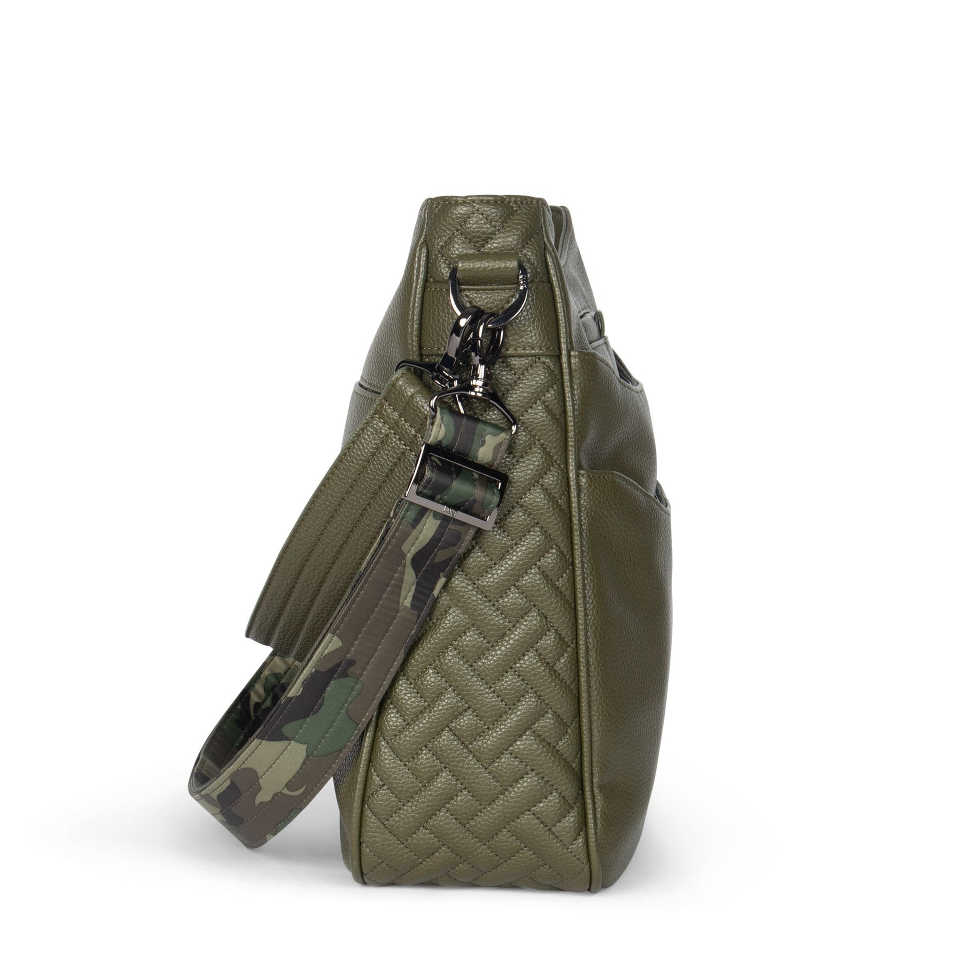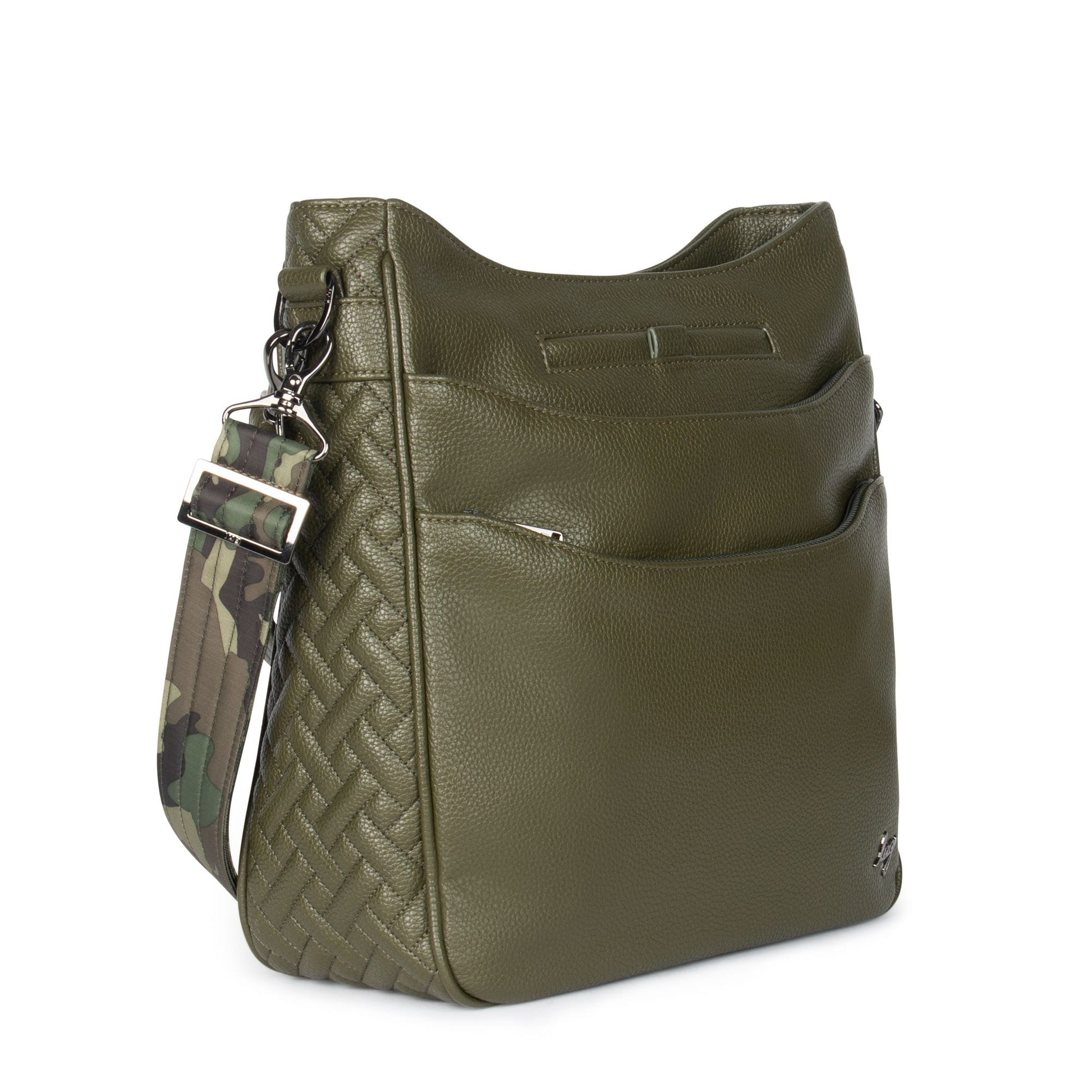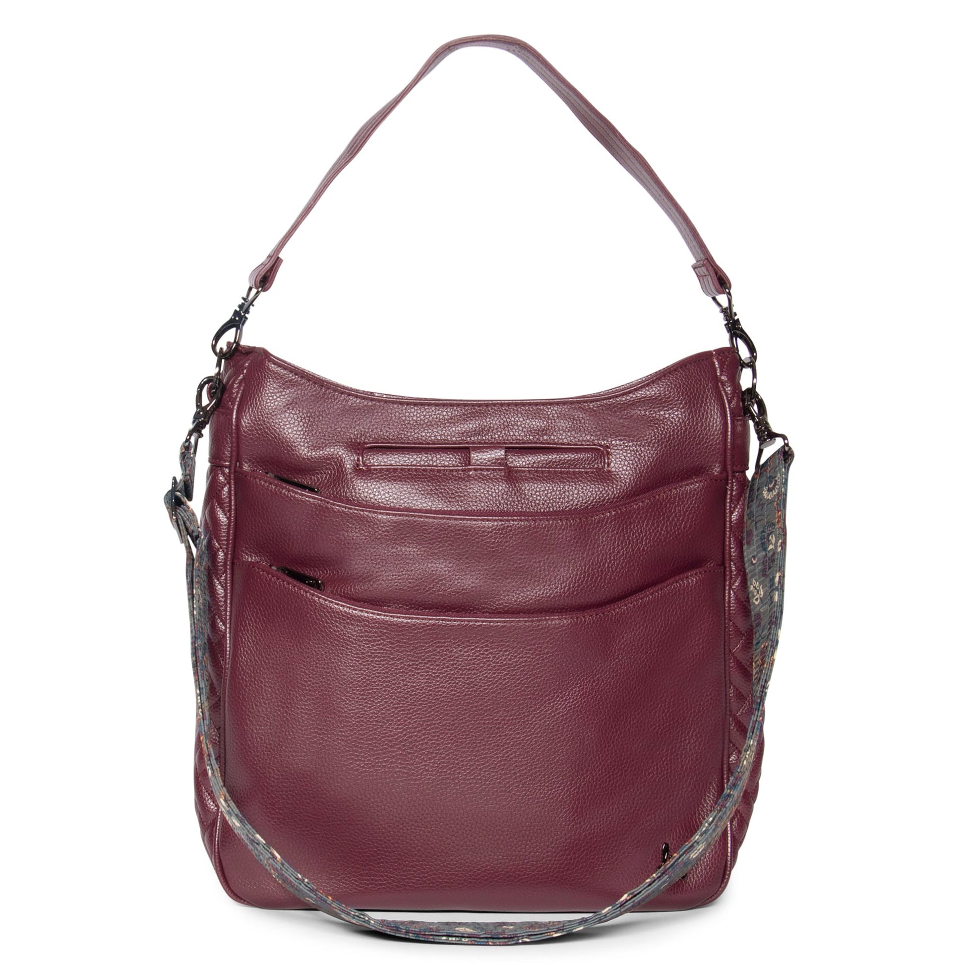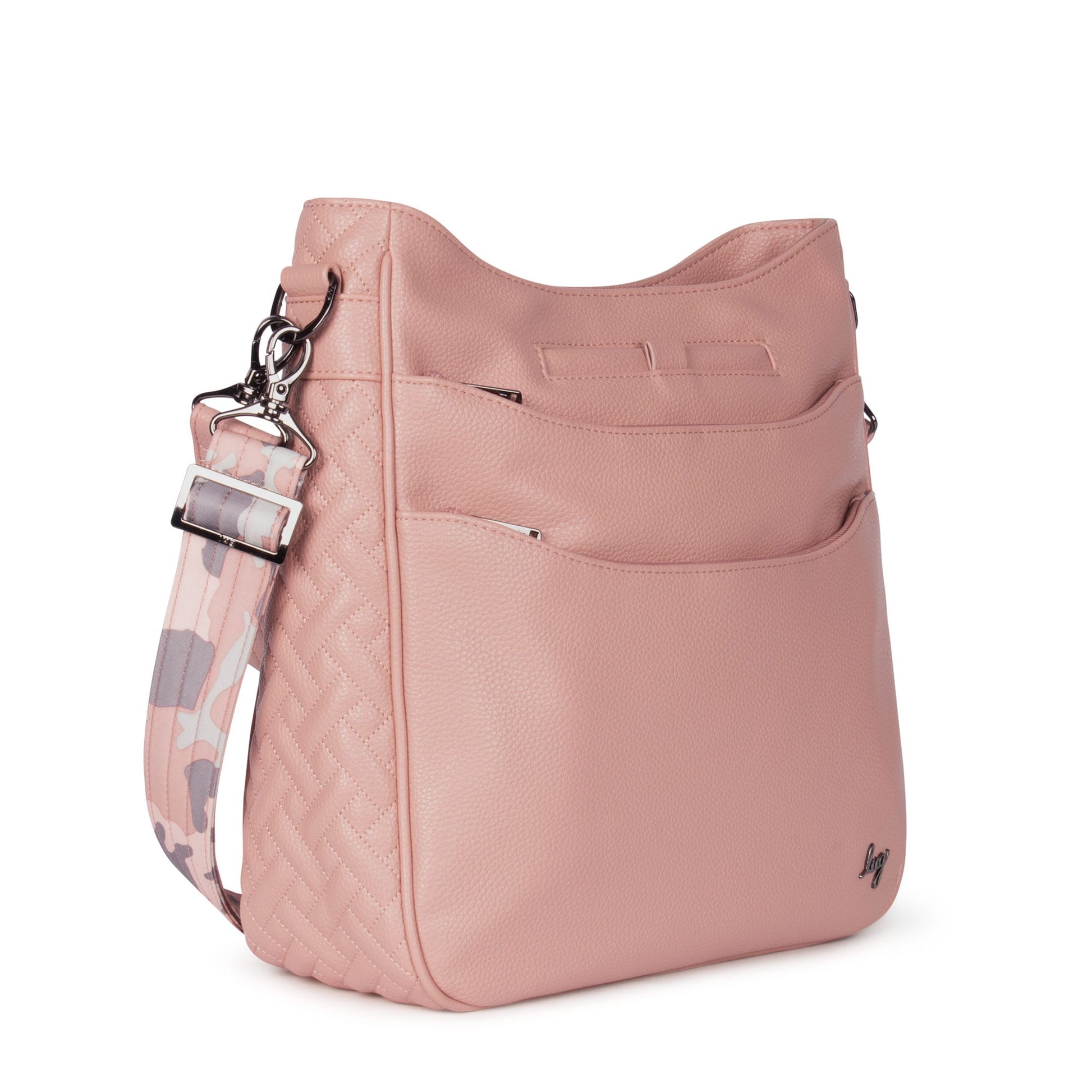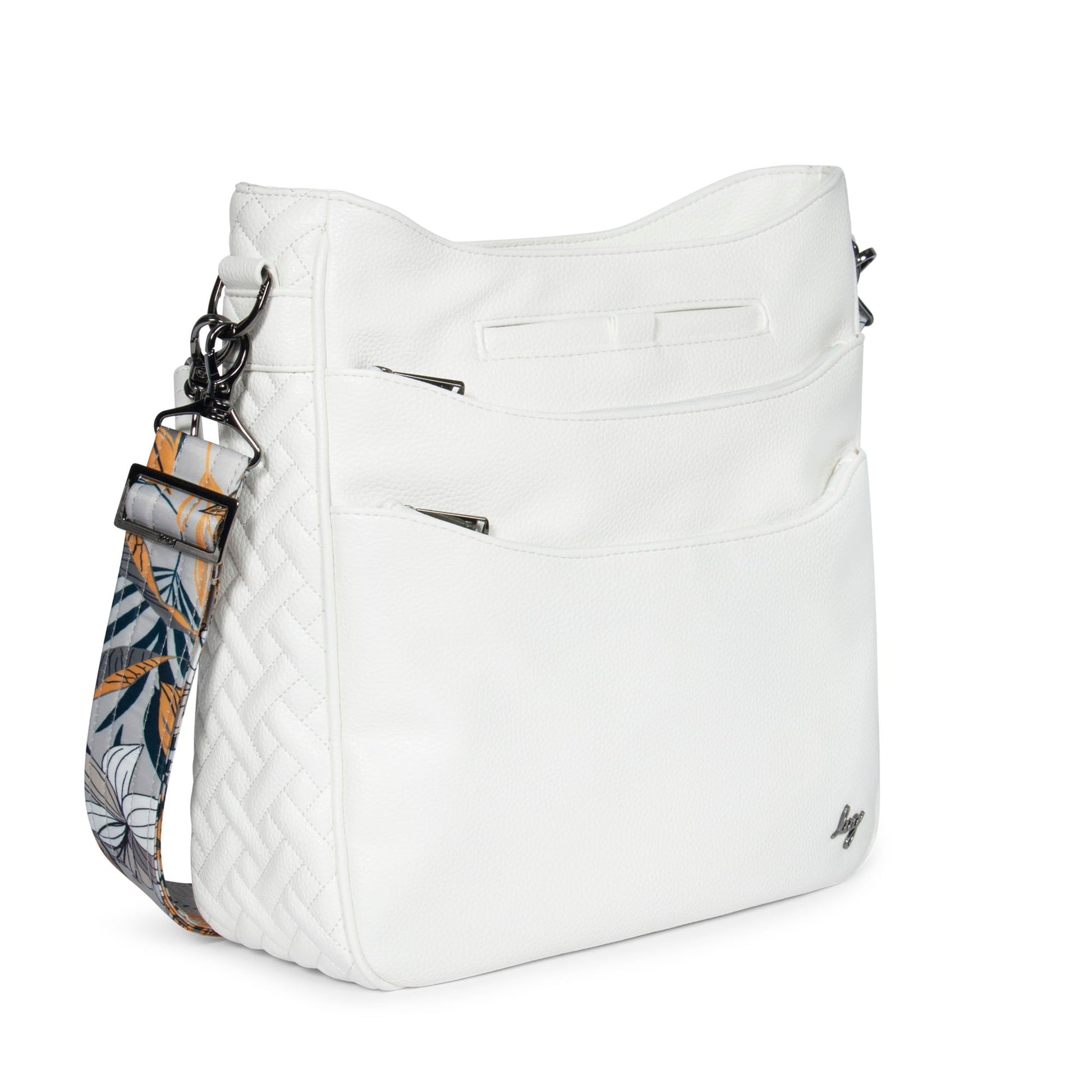 - Adjustable and removable printed crossbody strap