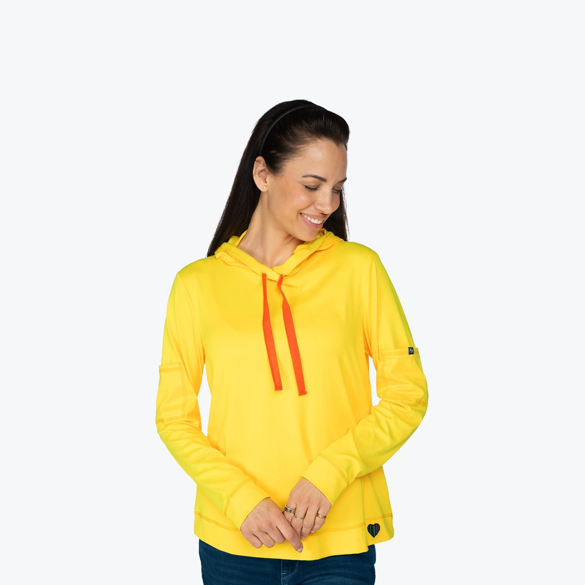 Indulge in the ultimate loungewear experience with our Coupe Brushed Jersey Hooded Top. Crafted from our oh-so soft Lug ColorJoy Inspire fabric, this cozy and ultra-soft hoodie is designed for everyday comfort. It features two sleeve pockets for convenience and a playful heart embroidery accent. With its relaxed fit and versatile design, it's perfect for lounging at home or running errands in style. Easy to care for, simply machine wash cold and tumble dry low.