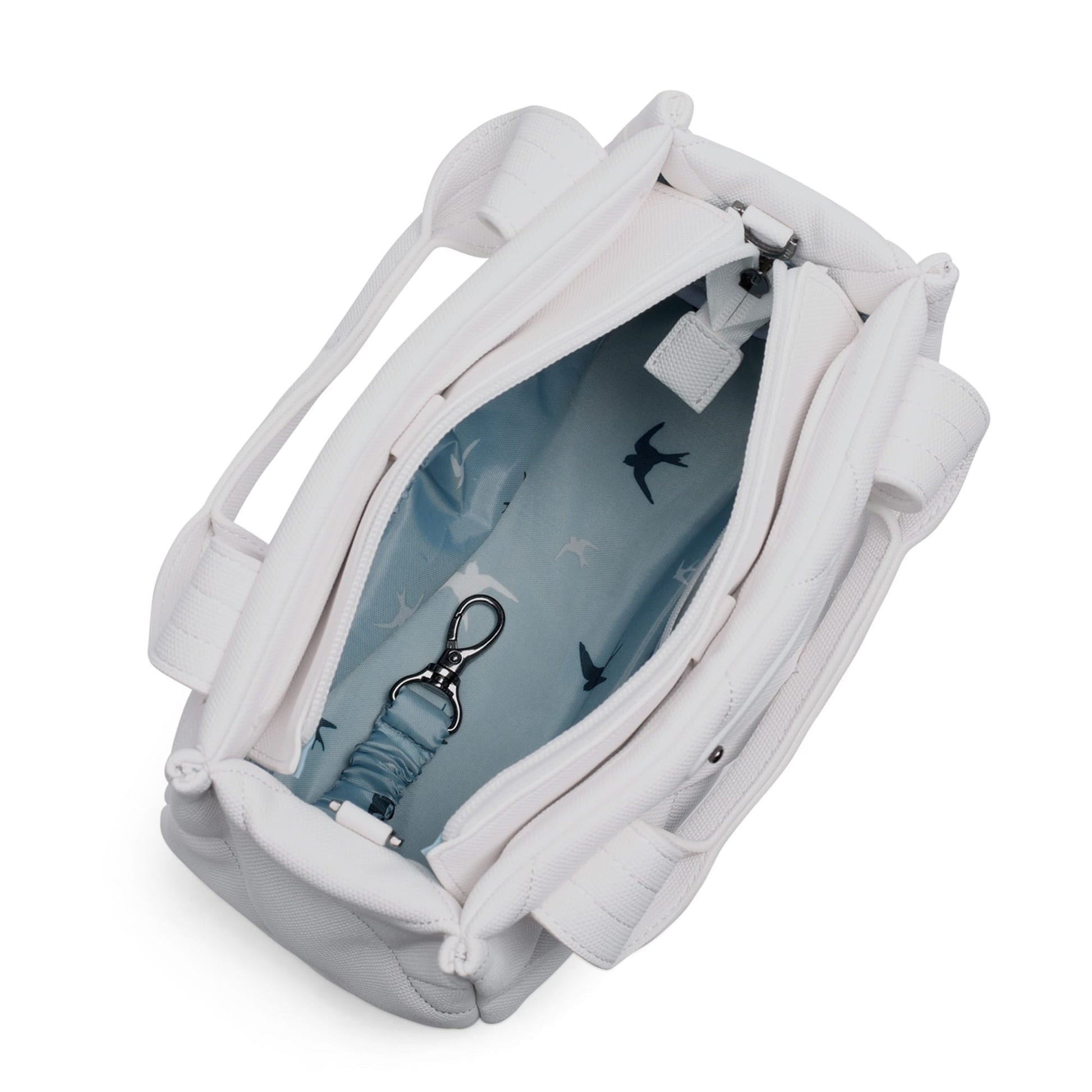 Exactly the same as the classic Jitterbug (called the J-Bug by some major fans), only it's completely different. That's because the Jitterbug Matte Luxe version has a Matte Luxe material — think canvas, but softer — for a whole new Lug feel. Other than that, it has all the features you know and love, like a charm bar, removable shoulder strap, and plenty of compartments for all your belongings.