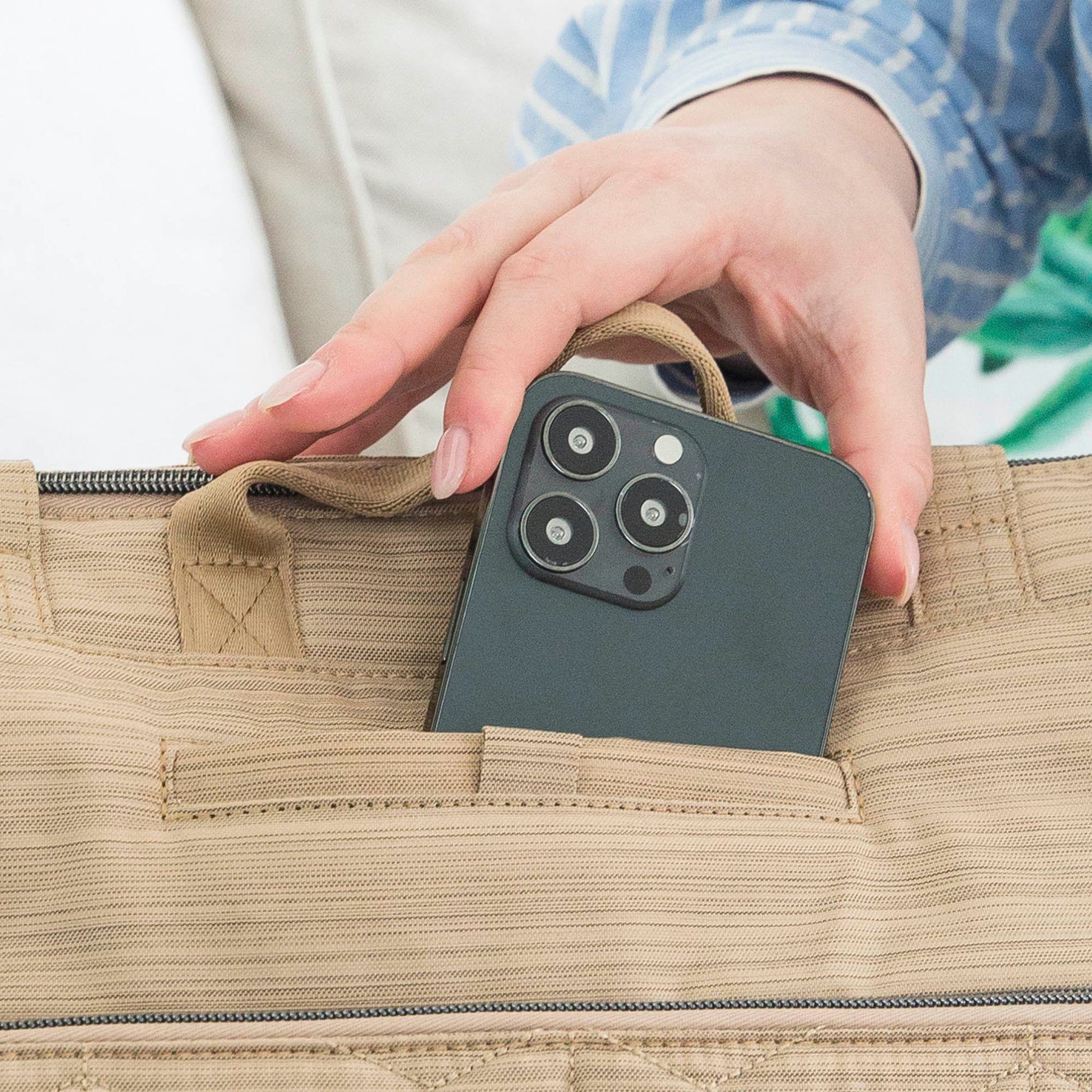 From everyday excursions to those elusive getaways, you will always have a tote you can count on to carry you through — or at least carry all your essentials through! Our Soprano tote features multiple carrying options, multiple exterior pockets, and a generously sized interior! You will find all of your favorite things like our signature cell phone pocket, a built-in RFID-protected wallet, a retractable key chain plus, so much more!